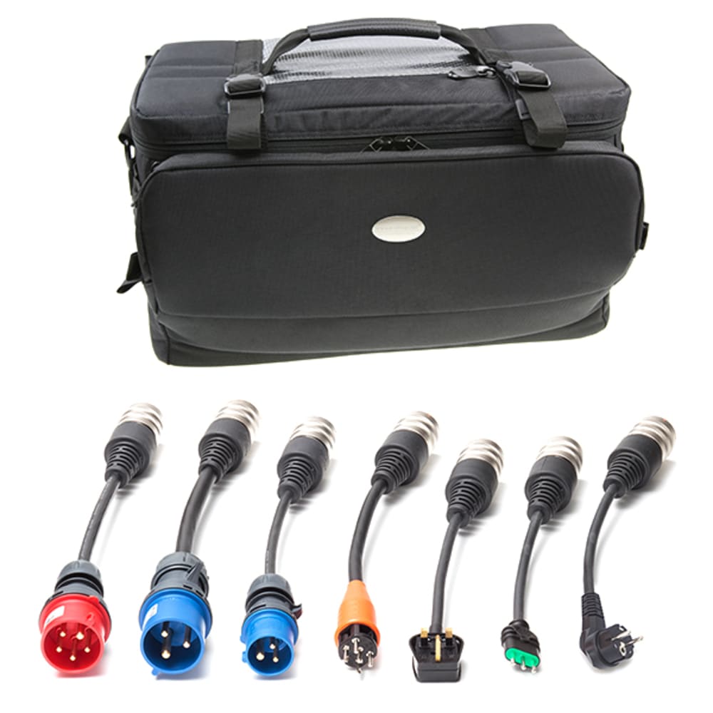 - Enthält CEE16 3-phasig, CEE16 1-phasig, CEE32 1-phasig, T15 (CH), CEE 7/7 (Schuko), Typ G (UK) und Typ L (IT)