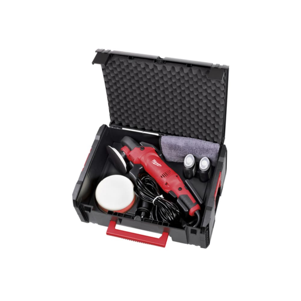 - Standardausrüstung / Lieferumfang: Netzkabel 6 m PUR, Zusatzhandgriff, Polierteller Ø 125 mm, Polierschwamm weich Ø 145 mm, Polierschwamm hart Ø 145 mm, Lammwolle-Polierscheibe Ø 135 mm, Mikrofaser-Poliertuch, 250 ml Polierpaste Schleifen, 250 ml Polierpaste Finishing