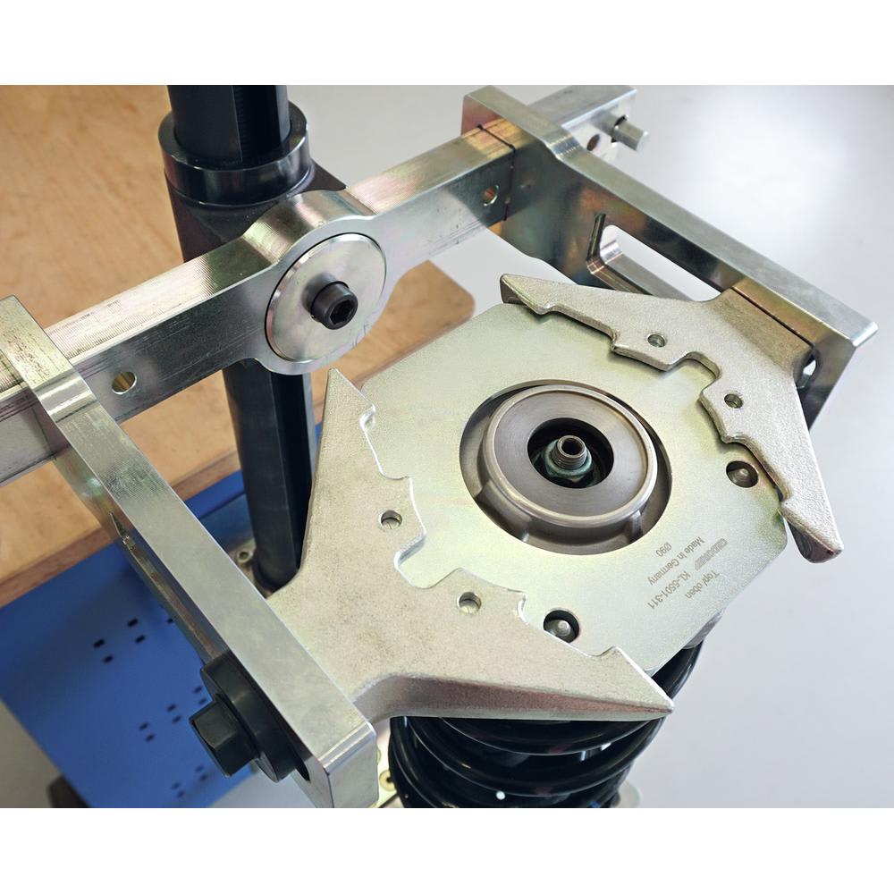 Der Telleraufnahme-Satz ermöglicht das sichere Aufsetzen des stationären Federspanners KL-5501 / KL-5501 B auf dem Federteller am Vorderachs-Federbein.