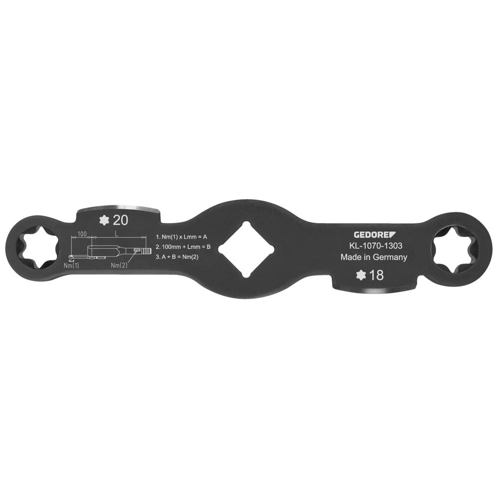 • Inkl. eingravierter Drehmoment-Umrechnungsformel - Passend für: Universell einsetzbar an Verschraubungen mit E18 und E20 TX Profil.