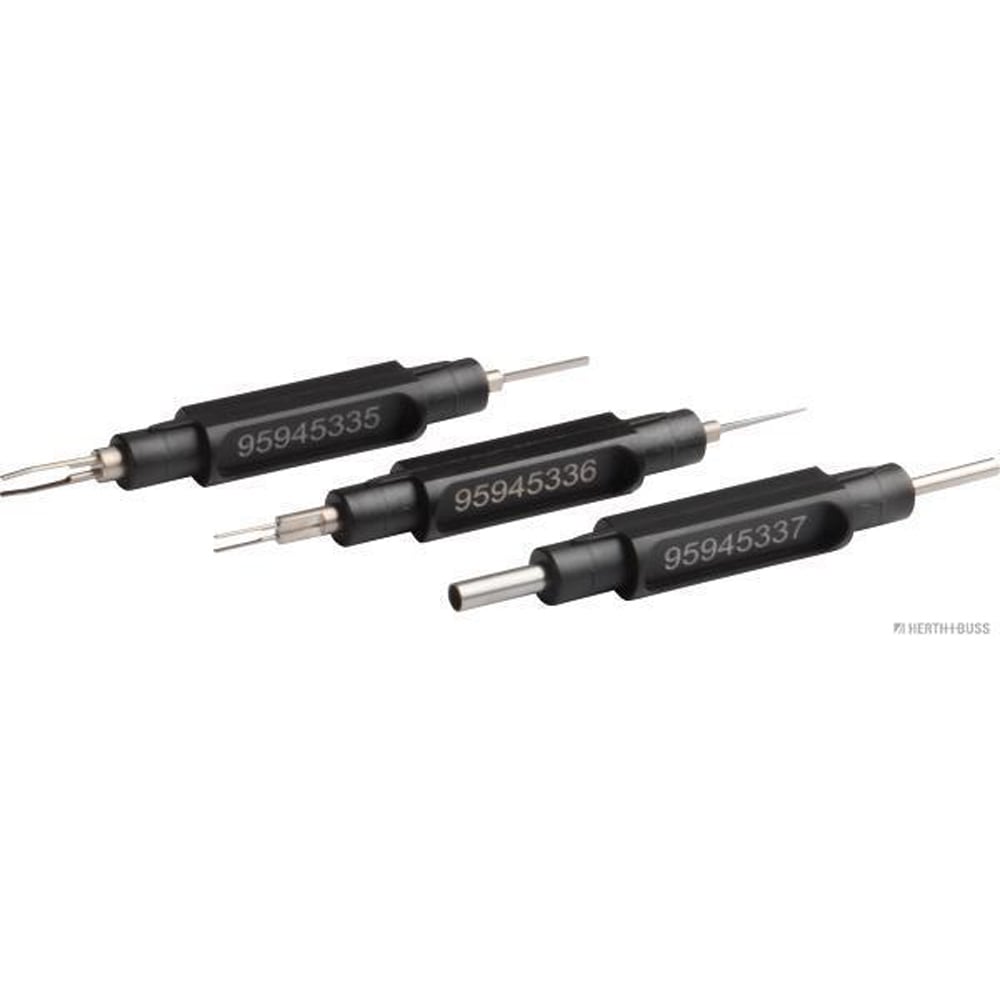 Mit dem Dreier-Set Entriegelungswerkzeuge lassen sich die gängigsten Verbindungen öffnen. Das Set beinhaltet drei Kabelentriegler mit sechs Klingen für gängige Crimpverbinder. Die Werkzeugspitzen sind aus hochwertigem Federbandstahl gefertigt und haben eine Zugfestigkeit von ca. 1800 N/mm. Das ermöglicht ein präzises Entriegeln.