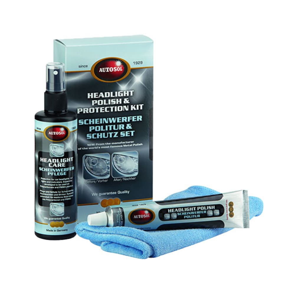Im ersten Schritt reinigt die Autosol Scheinwerfer Politur Scheinwerfer und Heckleuchten, entfernt leichte Kratzer und hinterlässt eine saubere sowie glänzende Oberfläche.