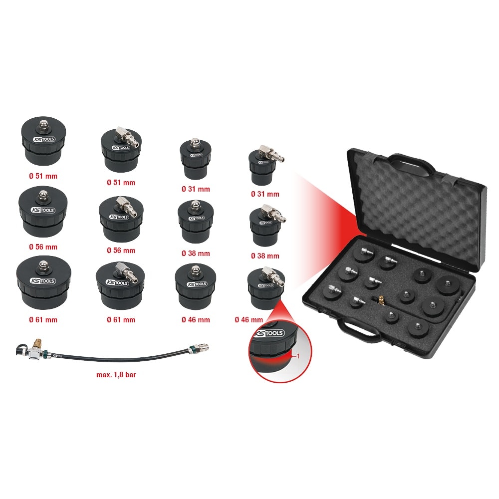 - ermöglicht schnelle Diagnose durch Abdrücken des Ladeluftsystems mit Bajonettverschlussdurchmesser 31,0 - 61,0 mm