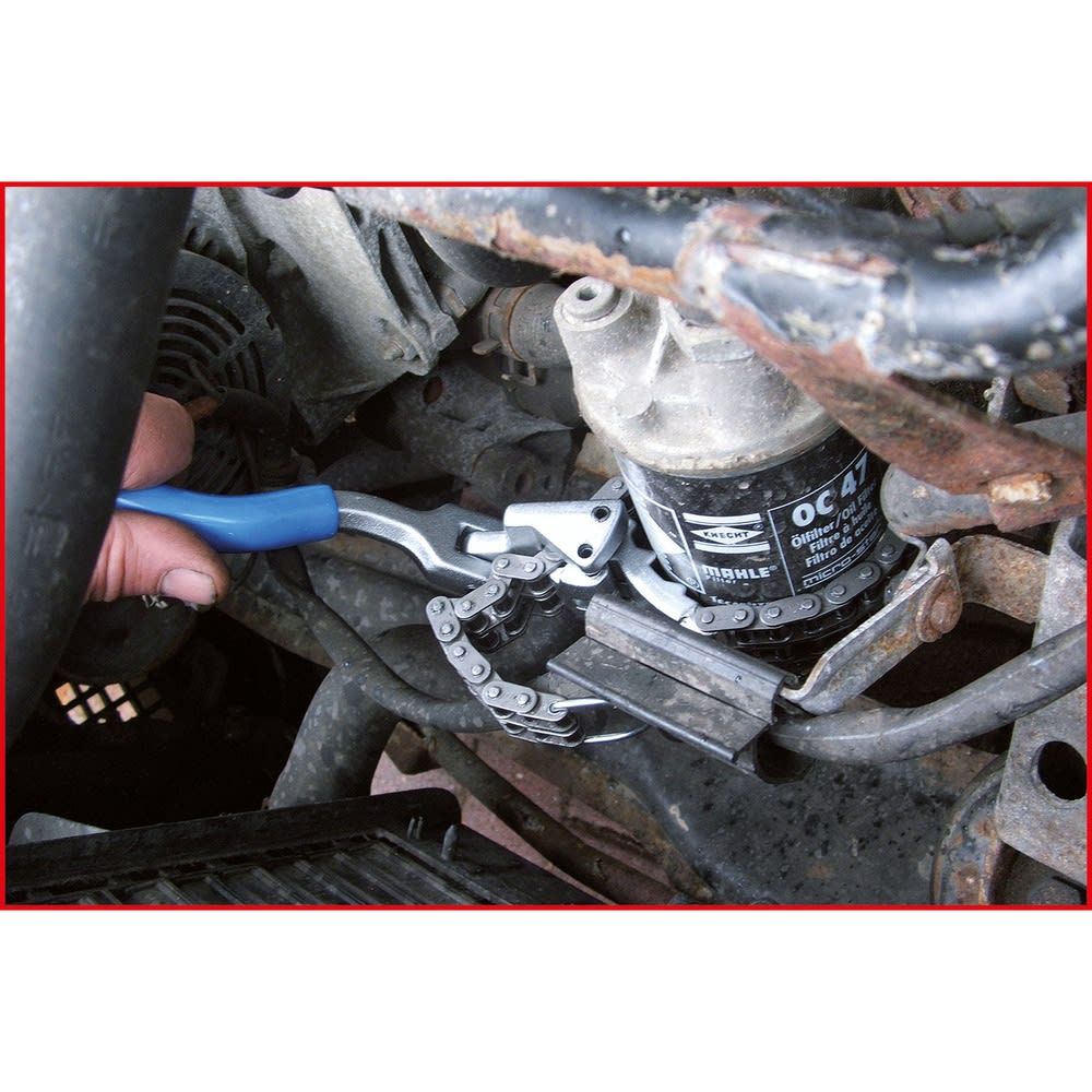 - Doppel-Spannkette mit zusätzlichen Rillen gibt sicheren Halt am Filter und sorgt für kraftschlüssiges Lösen des Filters