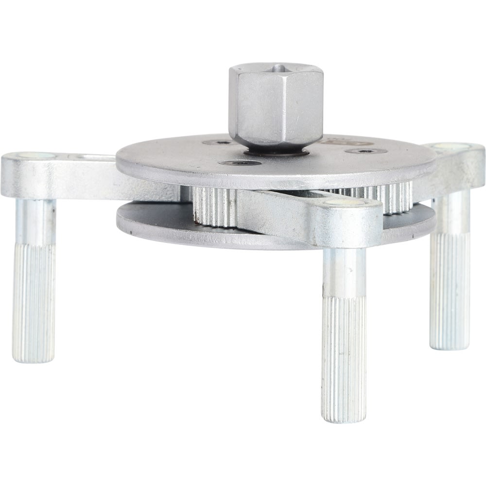 - die spezielle Links- und Rechts-Zustellmechanik ermöglicht ein Lösen und Anziehen von verschiedenen grossen Ölfiltern