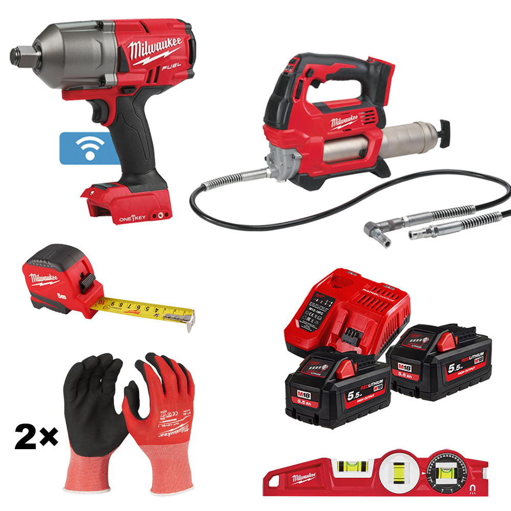 • 1× MILWAUKEE M18 Akku-Fettpresse