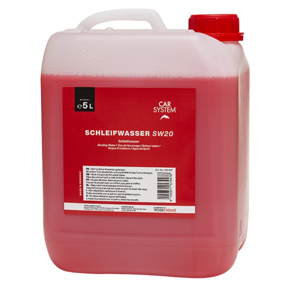Das Carsystem Schleifwasser SW20 eignet sich in Verwendung mit dem ProFlex Jupiter Soft H2O für den Nassschliff auf Klarlacken. Es verlängert die Standzeit und optimiert die Benetzung des Schleifmittels.