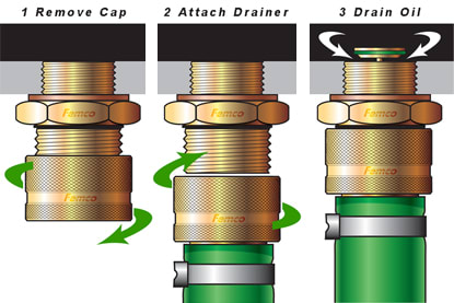 • Mit den nachhaltigen Ölablassventilen von Femco® können Sie auf schnelle, saubere und einfache Weise Öl aus Ihren Fahrzeugen, Maschinen oder Hydraulik-Systemen ablassen.