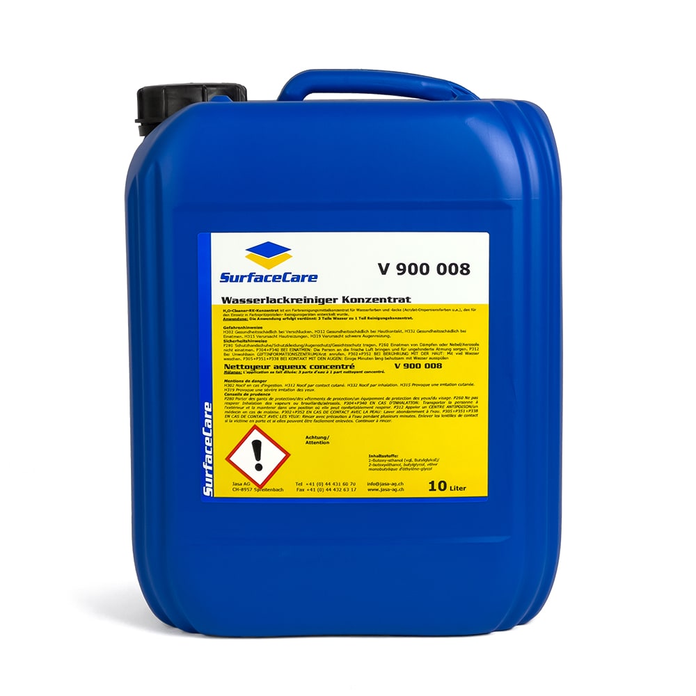 Reinigungskonzentrat mit Wasser 1:3 verdünnbar, geeignet um Pistolen, die mit Wasserlack betrieben werden, automatisch zu reinigen.