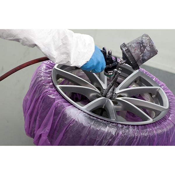 Flexible Lösung zum Abdecken von Reifen beim Nachspritzen der Felgen. Einfache Handhabung durch praktischen und hochelastischen Gummizug, enorme Zeitersparnis und Materialeinsparung.