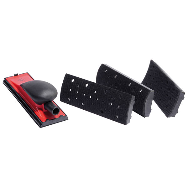 Handschleifklotzset mit Absaugung für den Trockenschliff passend zu Schleifstreifen 70 x 198 mm.