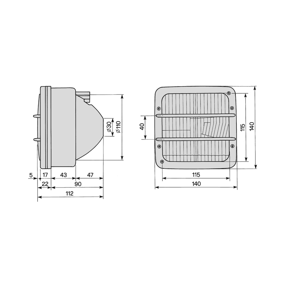 - Sortie de lumière : 110 x 110 mm