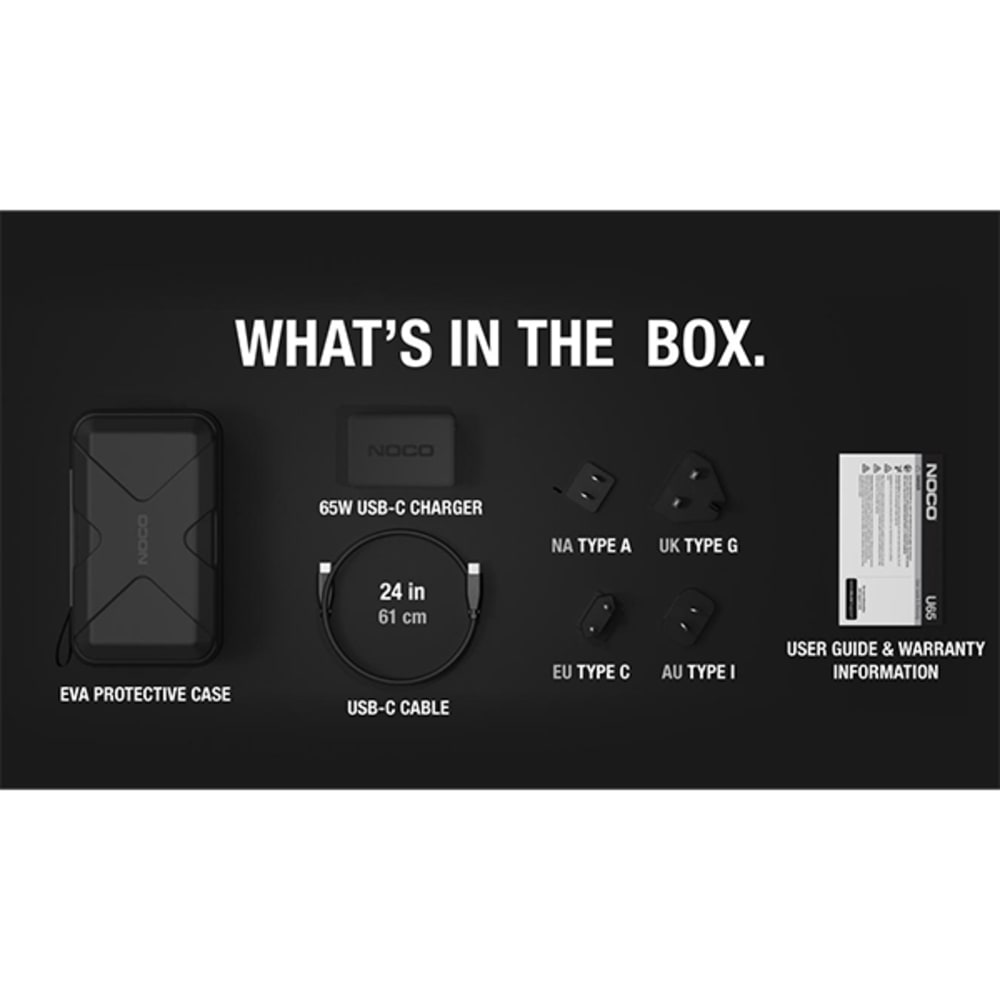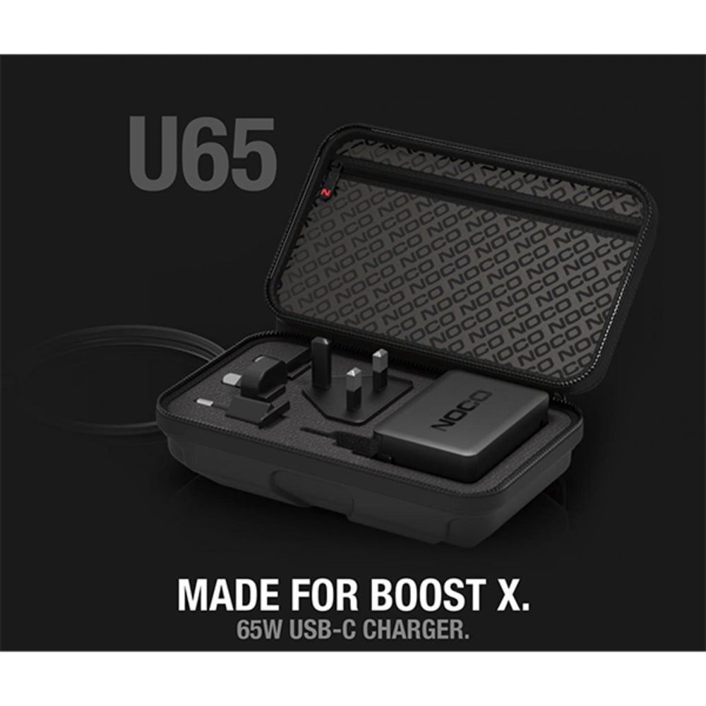 Le chargeur USB-C 65 watts U65 est conçu pour recharger les boosters au lithium NOCO Boost X.