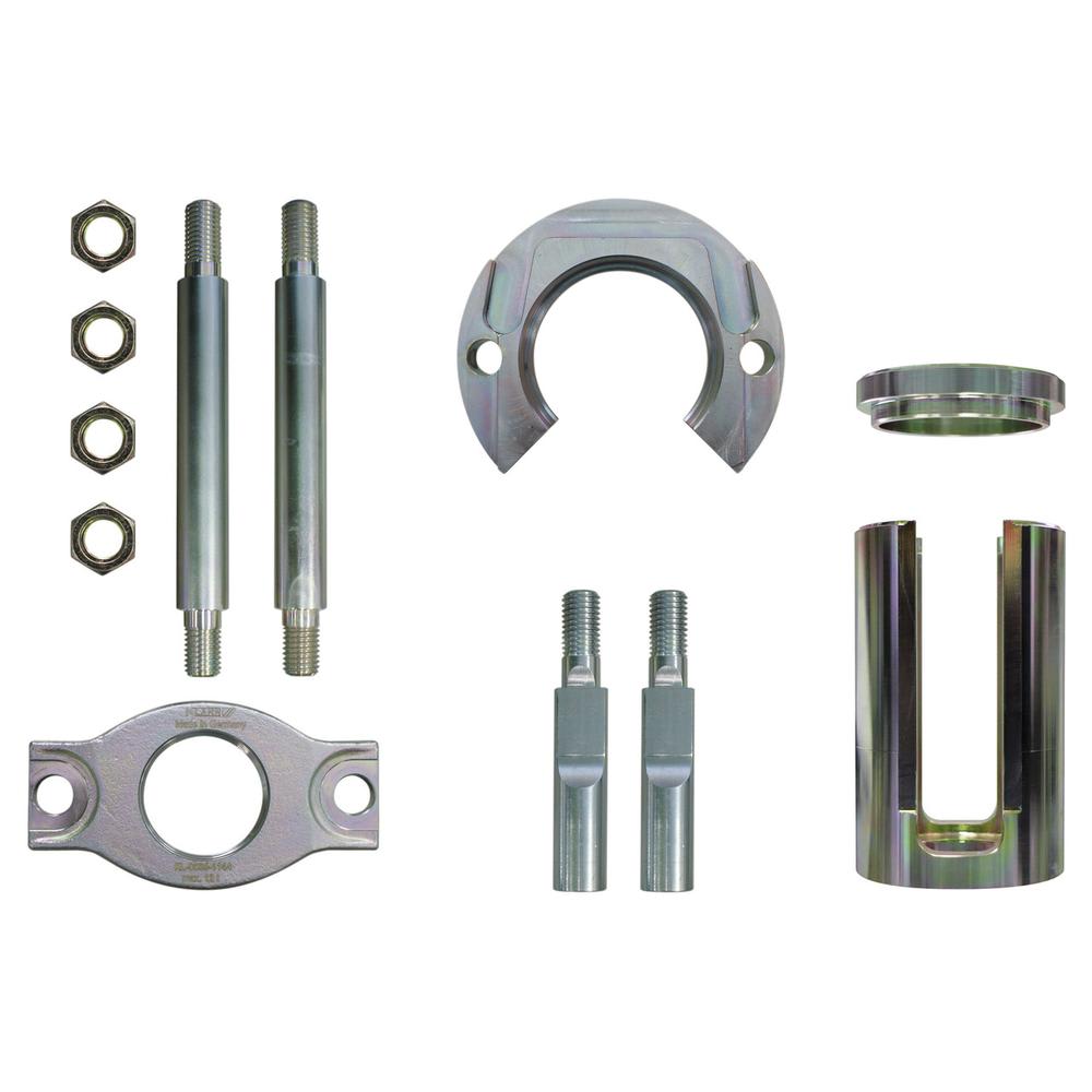 La construction et la forme particulières de la bague de support et du manchon de pression garantissent un retrait facile et professionnel du silentbloc lors du démontage, même s'il est très serré ou fortement rouillé.