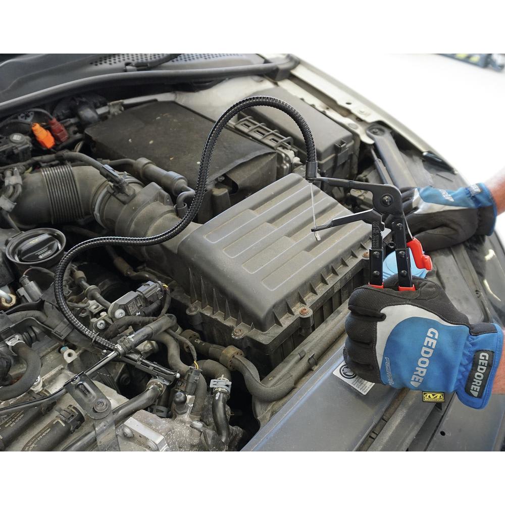 Cela permet d'atteindre les colliers de serrage à ressort, même dans les endroits extrêmement difficiles d'accès, comme par exemple sur les refroidisseurs EGR.