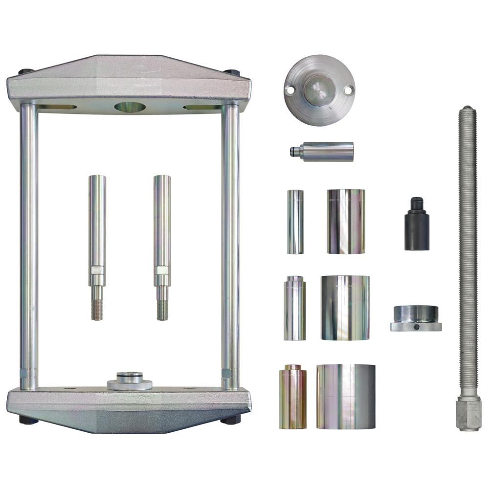 Le grand et massif cadre de presse VU permet d'extraire et d'insérer différents types de douilles, de roulements ou de boulons directement sur le véhicule.