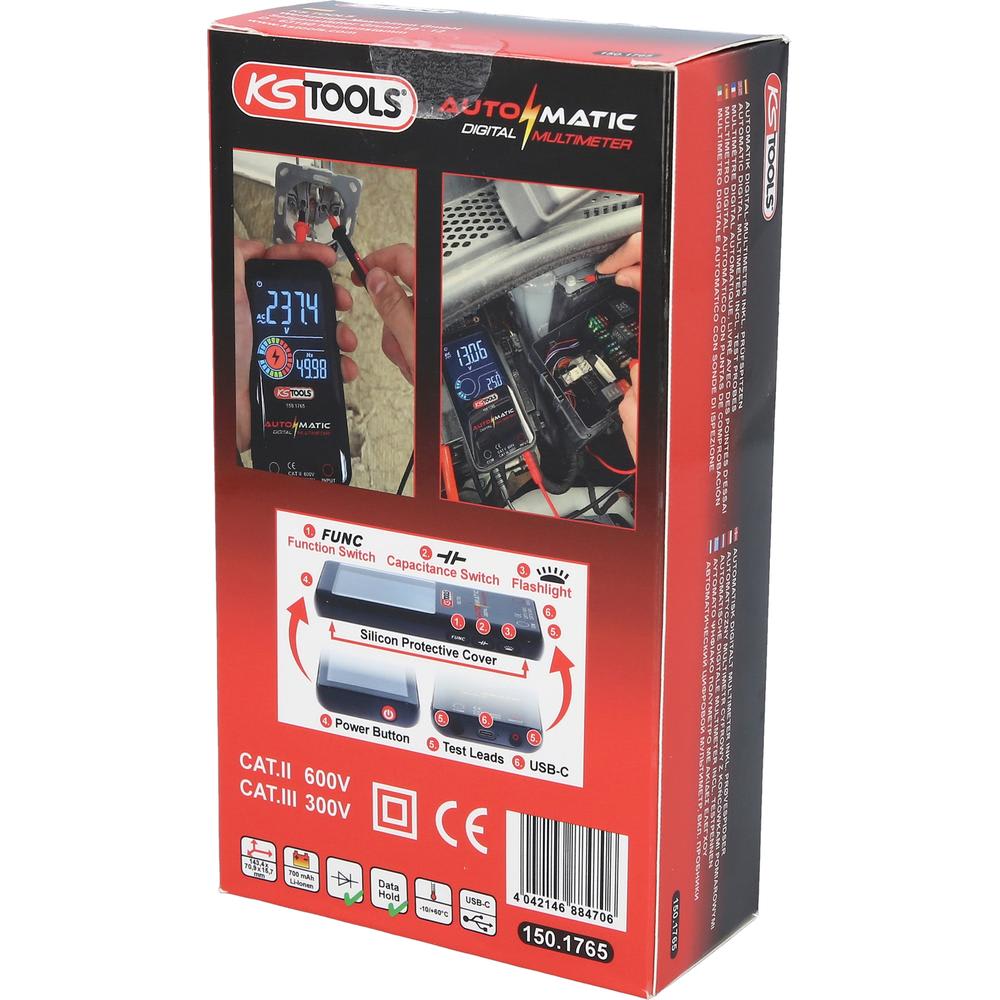 - Identification automatique de la tension alternative, de la tension continue et de la résistance
