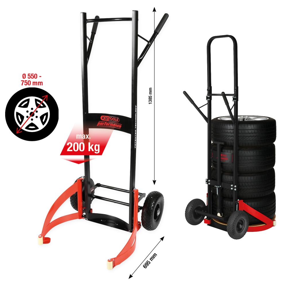 - Pour transporter quatre pneus ou roues de Ø 550 - 750 mm