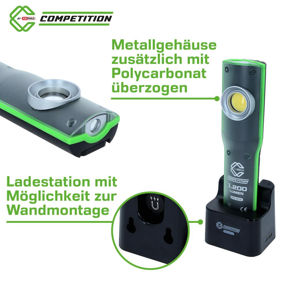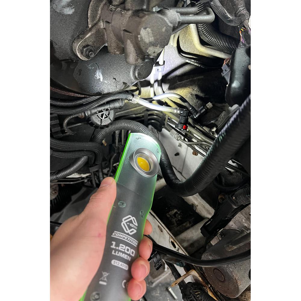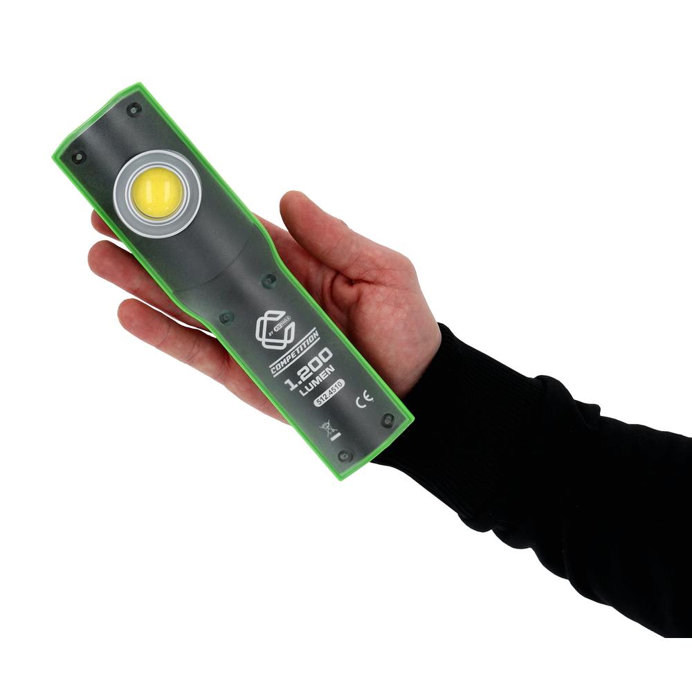- LED COB frontale extrêmement puissante avec 1 200 lumens et angle d’éclairage de 90°
