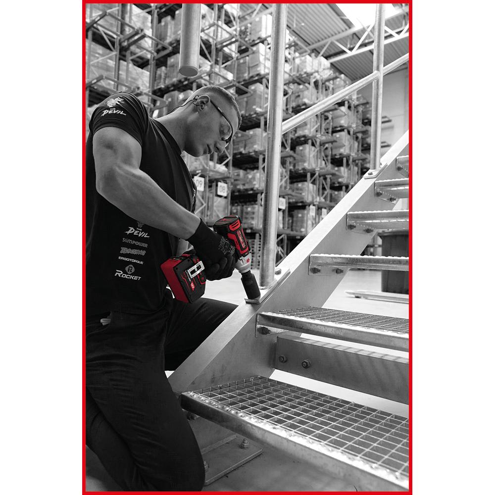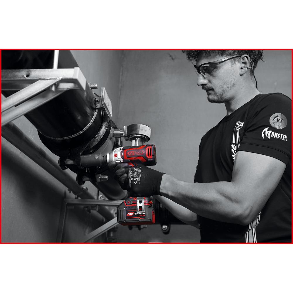 La visseuse à percussion eMONSTER 1/2" sans fil et sans balais séduit par son format compact et par son couple exceptionnel de 690 Nm. Avec ces propriétés, c’est un compagnon indispensable dans les environnements de travail exigeants. La visseuse à percussion permet de régler le couple sur trois paliers afin de répondre aux exigences individuelles. De plus, elle est munie de deux mécanismes de déblocage différents. La rotation à gauche classique et la fonction Arrêt de rotation. Ces deux mécanismes permettent le desserrage sans effort des vissages. Par ailleurs, l’appareil détecte seul si un vissage est ouvert et s’arrête automatiquement. Cela permet d’éviter toute poursuite du fonctionnement après le desserrage d’un raccord vissé, améliorant ainsi la sécurité au travail.