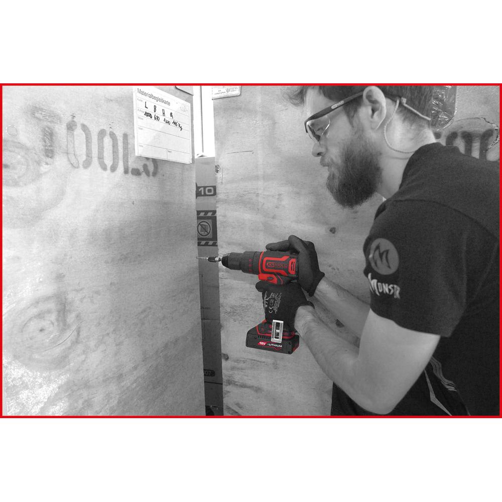 La perceuse-visseuse à percussion sans fil eMONSTER est la plus polyvalente de la gamme eMONSTER. Elle peut être utilisée de manière flexible pour effectuer des perçages à percussion ou encore des travaux de perçage simple ou de vissage. La présélection du couple intégrée permet de régler le couple avec précision sur 25 paliers jusqu’à un couple maximal de 60 Nm. Ainsi, elle est extrêmement performante et flexible. La boîte à 2 vitesses de qualité permet un fonctionnement avec des vitesses de rotation pouvant aller jusqu’à 450 tr/min en première et jusqu’à 1 900 tr/min en deuxième. La perceuse-visseuse à percussion convient donc pour les travaux de précision, mais aussi pour avancer plus vite sur les tâches exigeantes.