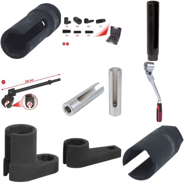 Outils pour sondes d'échappementRéparation filetagePinces pour echappementsOutils de coupe pour tuyaux d'echappementCrochets pour silent bloc d'echappementOutils speciaux pour vanne EGR / capteur de pressionAppareil de test de pression de gaz d'echappementArticles