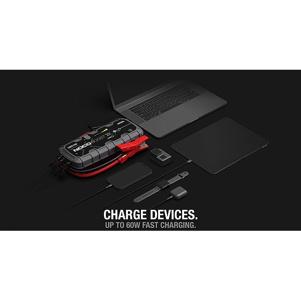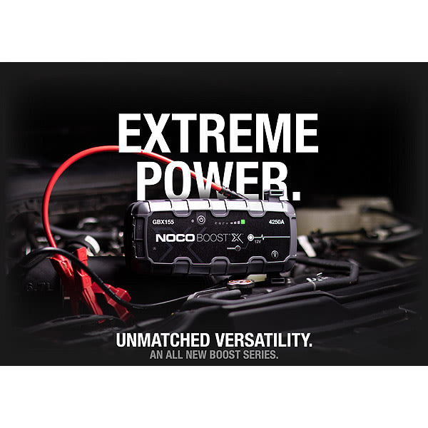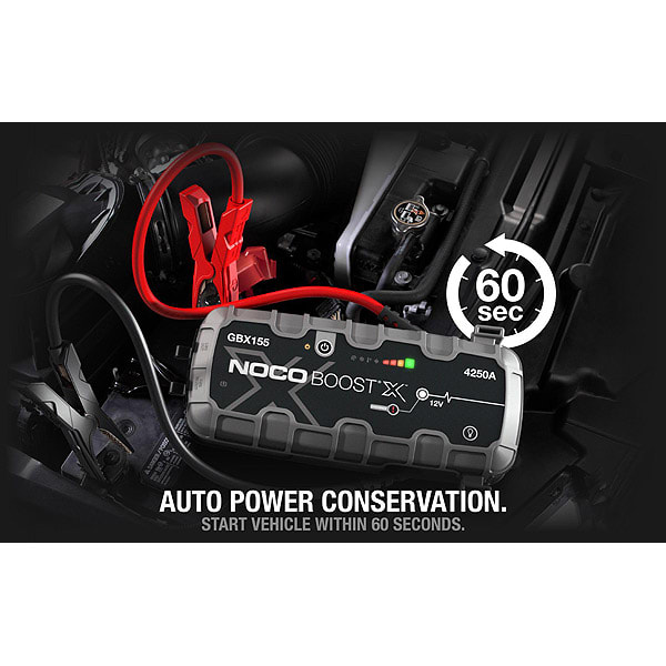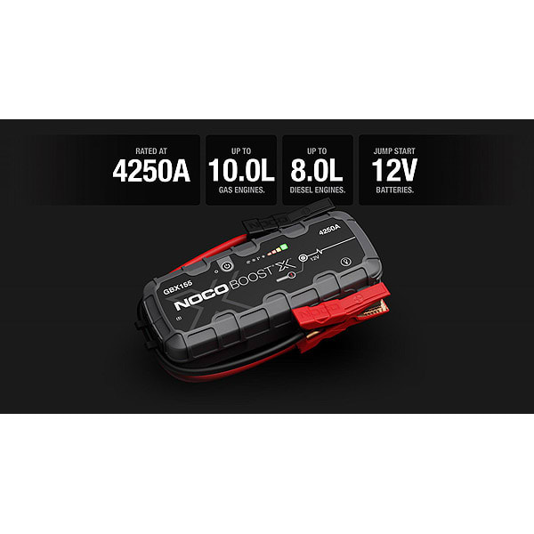 • Le NOCO Boost X GBX155 est un démarreur au lithium portable pour les batteries 12 volts des véhicules équipés d'un moteur à essence de 10,0 litres et d'un moteur diesel de 8,0 litres, notamment les voitures, les motos, les camions, les VTT, les bateaux, les véhicules de loisirs, les camionnettes, les SUV, les tracteurs, etc.