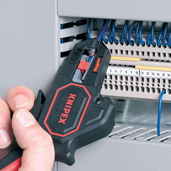 Quand il s’agit de dénuder occasionnellement des câbles, par exemple pour installer une lampe, en modélisme, dans le camping-car ou pour installer des prises de courant additionnelles, la Knipex 12 62 180 est un bon choix. Elle décharge de beaucoup de travail les bricoleurs, mais aussi les utilisateurs professionnels. Le réglage à différentes sections des conducteurs est, d’une part, supprimé puisque la pince s’en charge automatiquement et, d’autre part, la forme élancée de la tête permet de dénuder dans des endroits difficiles d’accès, par exemple dans des boîtes de distribution. Un coupe-fil pour conducteurs en cuivre ou aluminium jusqu'à 2,5 mm² est en outre à bord, L’utilisateur économise ainsi un outil.