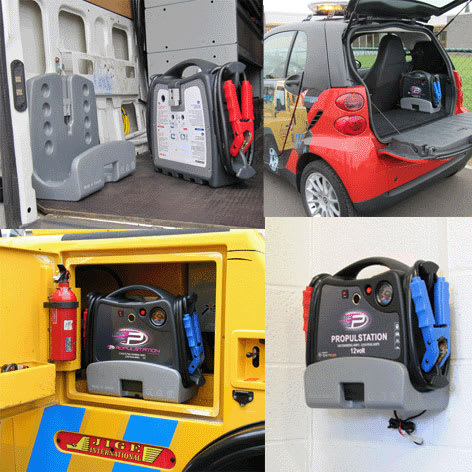 Quand le booster est posé sur la station de base 230 V, il vient chargé automatiquement. Le booster reste chargé pour chaque utilisation et la vie des batteries du booster vient rallongée. Livrable en option la station de recharge DC/DC 12 V, pour une installation du Booster dans les véhicules d'assistance, de dépannage etc.