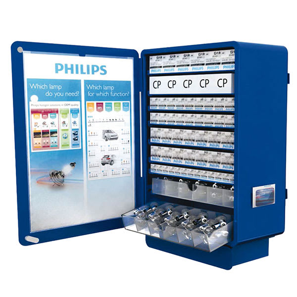 • Parfaitement organisée et toujours la bonne lampe disponible avec l‘armoire métallique de Philips.